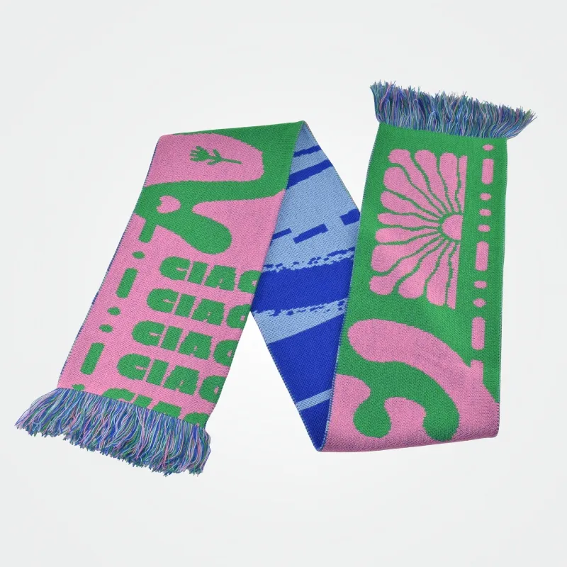 Gestrickter Jacquard Fanschal aus 100% Soft Polyacryl Hochbausch-Garn.